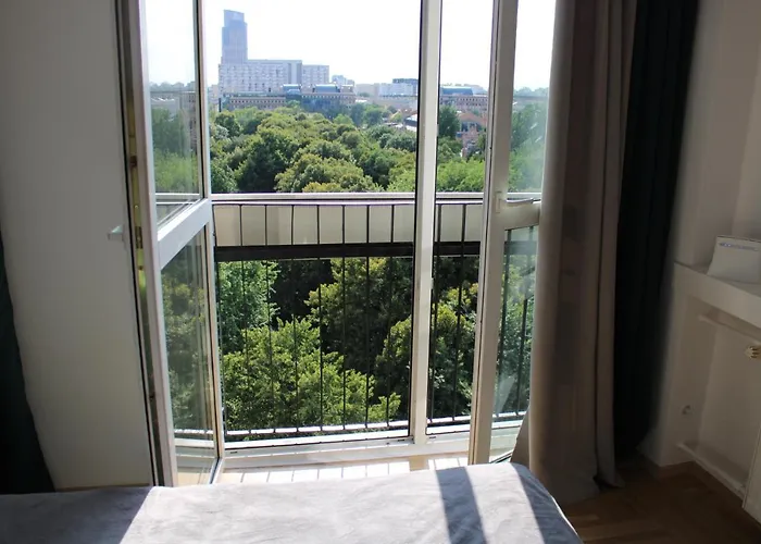 Das 1-Zimmer-Strict Center Warsaw Comfortable Apartment, 10Th-Floor With Beautiful View On The Park And Skyscrapers, Free Wifi, Self Check-In/Out bietet einen Blick auf den Garten und liegt 5 Minuten Gehweg vom Johannes-Paul-II-Museum entfernt.